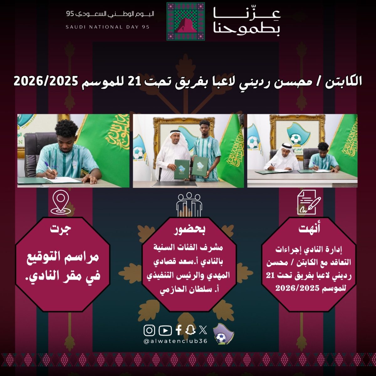 الكابتن / محسن رديني لاعبا بفريق تحت 21 للموسم 2026/2025
